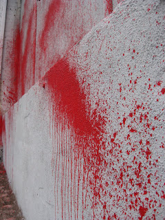 It was really cool to see father and son working together to finish this piece yesterday. They we're both covered in red paint from throwing it out of cups and spraying it out of cans onto the wall. The coolest part had to be when MBW was stretched out, standing on top of the bucket and his son ran over and held it for him, protecting him from a possible fall.