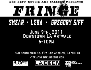 FRINGE, a street art show featuring Smear, Leba, and Gregory Siff opens next Thursday June 9th in downtown LA.
